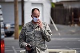 Senior Master Sgt. Donald Belfils oversees the distribution of food as part of a major …