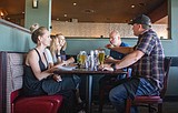 Noah Stevenson hands Trudy Doolittle her meal on late Saturday afternoon as The Old Hotel …