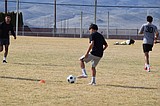 Mavs’ Kevin Segura controls the ball as he makes a push to score a goal.