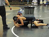Christopher Lara of Wahluke controls an Ephrata opponent on his way to a 10-1 victory …