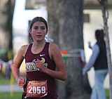 Aspen Hones runs through a straight path during the girls’ varsity 5K race on Tuesday. …