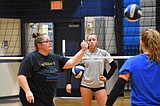 Brooke Dana, Soap Lake, readies to hit the ball back to her training partner during …