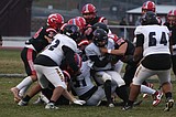 The Huskies’ defense makes a stop against the opposing team’s run last season. The defense …