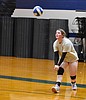 Whitlee Hollenbeck from the Huskies jumps up to hit the ball back to the opposing …