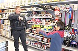 Ulizes Hernandez (right) and his shopping buddy Travis Ruffin of the Moses Lake Police Department …