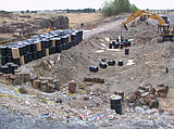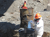 Russ Hersh soaks insulation that's been removed to assure it doesn't re-ignite.