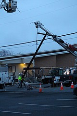 A broken power pole is removed on Gumwood Street in Moses Lake.