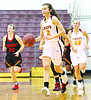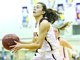 Connor Vanderweyst/Columbia Basin Herald - Moses Lake point guard Jamie Loera drives to the basket …