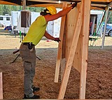 A Columbia Basin Job Corps student builds a signboard at the fire camp near the …