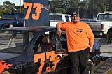 Tomas Pruneda stands next to his car in the pit area outside the rodeo arena …