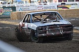 An Othello Demolition Derby competitor races around the rodeo arena as fast as he can …