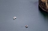 Fishing boats sit on Dry Falls Lake on May 5. Anglers made up the majority …