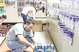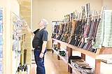 A volunteer stocks the shelves at High Mountain Hunting Supply at its new Moses Lake …