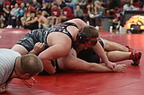 LRS senior Brock Tracy, top, pins his opponent at the Bronco Invite in Ritzville in …