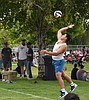 A player makes a serve during the volleyball tournament at Othello’s Fourth of July celebration …