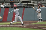 Ernie Weeks from the Central Washington Sixers swings at a pitch in a game the …