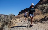 Chris Carrato Jr., left, and Bo Carrato make their way up a trail near Lake …