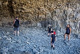 Hikers stand inside one of the caves near Lake Lenore on Sunday afternoon as they …