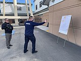 Grant County Sheriff's Office Lt. Dean Hallett instructs Quincy Police Officer Gary Amaral on how …