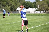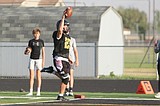 Soap Lake running back Alexander Bustos raises his arms to catch a pass during practice.