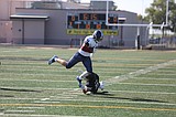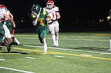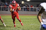 Moses Lake receiver Kyson Thomas (5) runs up the sideline on a 65-yard touchdown catch.