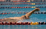 Cole Lindberg makes his way across the pool in the 100 yard butterfly event on …