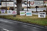Signs along South Pioneer Way in front of Assured Home Health, as a “thank you” …