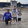 Young riders prepare to ride at the top of a hill at the Moses Lake …