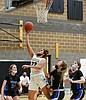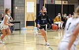 Warden High School's Kiana Rios powers her way into the lane to score in the …