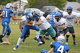 Warden defenders take down a Wahluke running back during Tuesday’s spring jamboree.