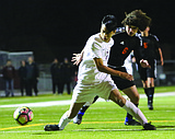 A Connell player knocks the ball loose from Emmanuel Hidalgo, but Luis Vaca is there …
