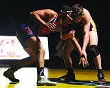Royal's Flor Araujo (3), Elsie Delgado (2) and Diana Medina (12) compete for control of …