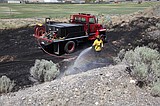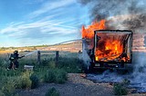 Firefighters control a fireworks truck fire early Sunday morning, south of Ephrata.