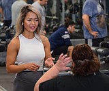 Emmy Winzler, manager of Evolve Fitness in Moses Lake, talks with a client.