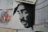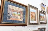 Duke Stoker’s paintings line the stairway during his exhibit at the Old Hotel Art Gallery …