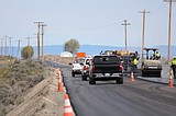 Construction crews add stripes in the project area of Silica Road last week. Sections of …
