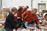 Volunteers at the Moses Lake Food Bank sort toys donated by the Unchained Brotherhood motorcycle …