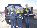 From left, Sydney, Jesse and Kendra Burke remove plants from their father's pickup to start …