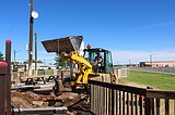 A crane removes equipment from Othello's Well Six well house through an opening in the …
