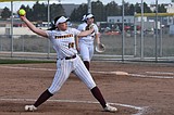 Mavs Paige Richardson pitches in a Big 9 game. Richardson won her second straight league …