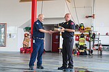 Moses Lake firefighter and EMT David Durfee beds the new Engine 1 with the Moses …