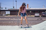 Lesly Aguirre tries out the vertical ramp at the skate park tentatively on just her …
