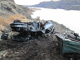 By the time firefighters had put out the flames, the injured driver’s overturned vehicle was …