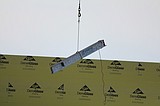 Signaling the end of the first phase of construction, the last piece of steel framing …
