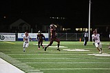 Case Christensen (9) weaves through the Freeman defense on his 20-yard catch-and-run in the first …
