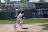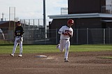 Othello sophomore Sonny Salazar, in white, smiles while trotting around the bases after hitting a …