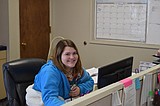 Othello Police Department Officer Tyson Cox (left) runs a price check for Riley Sams (center) …