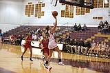 ACH junior Beth Okamoto runs down the court on a fast break, preparing to lay …