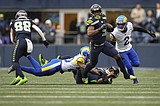 Seattle Seahawks running back Kenneth Walker III became the second rookie in franchise history to …