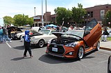 A 2016 Hyundai, a 1965 Mustang and a 1951 MG (the red car behind the …